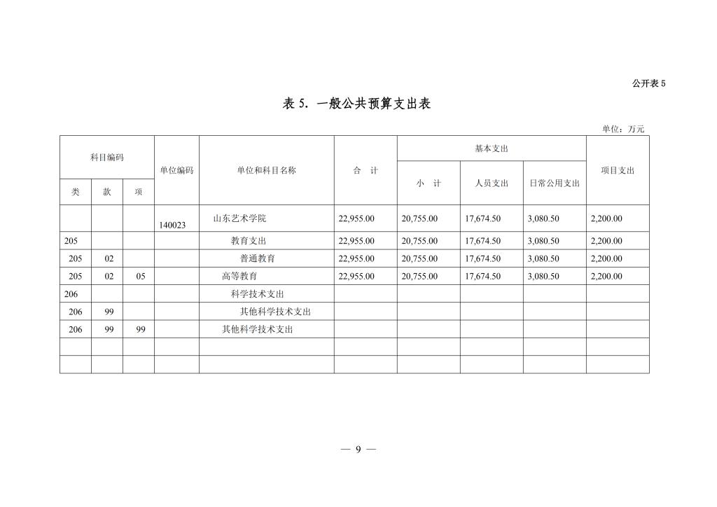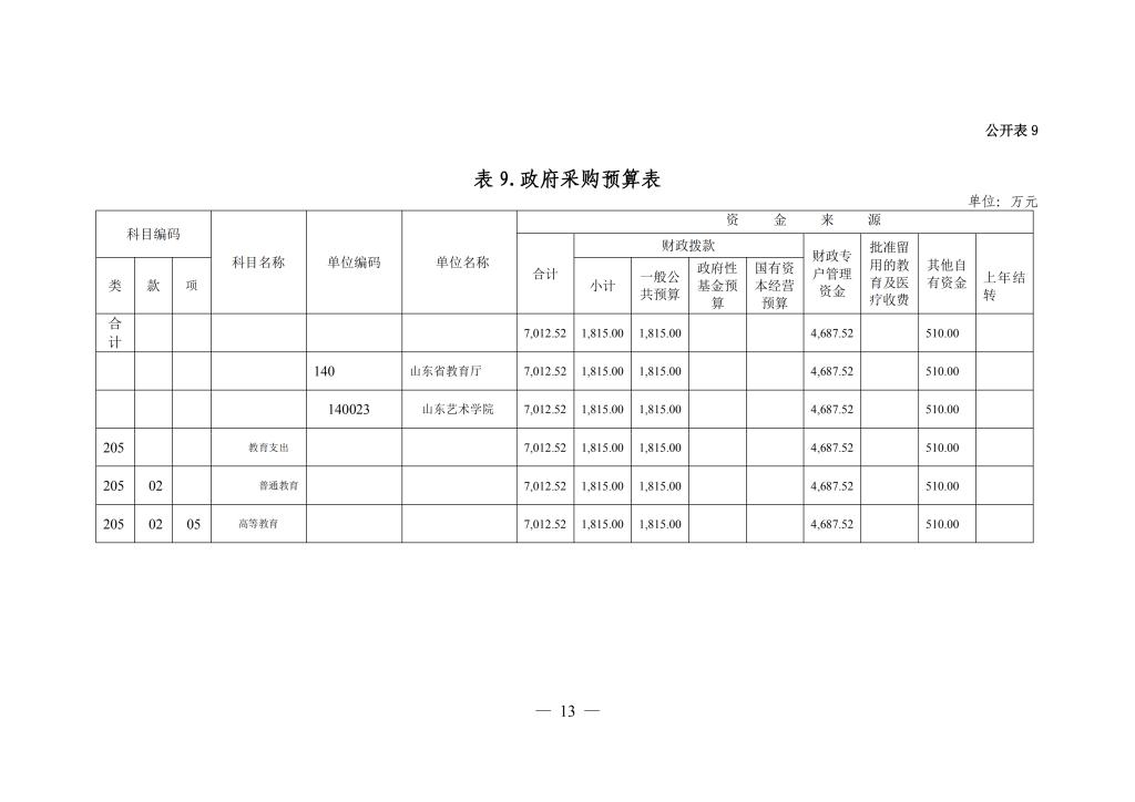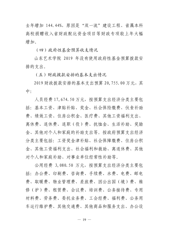 山东艺术学院2019年部门预算公开