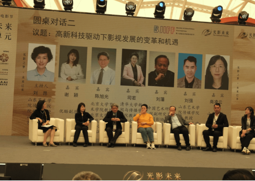 宋法刚作了《技术变革维度中电影美学的“破”与“立”》主题演讲。牛光夏、张楷参与第一场圆桌论坛,围绕“高新科技背景下的影视创作与研究”展开研讨;刘强、商凌云参与了由刘昂担任学术主持的第二场圆桌论坛,围绕“高新科技驱动下影视发展的变革和机遇”进行了论坛研讨。