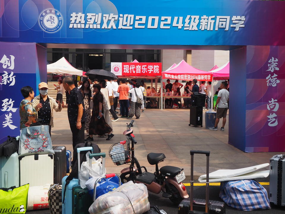 8月31日,山东艺术学院文东校区,大批2024级新生在他们父母的带领下前来报到。