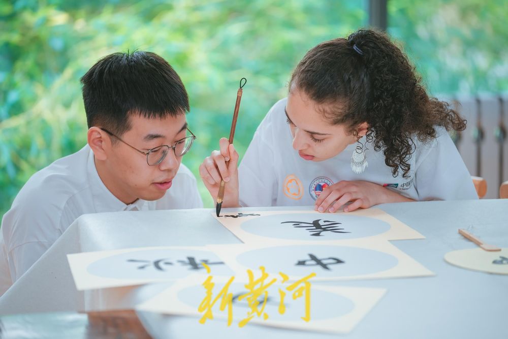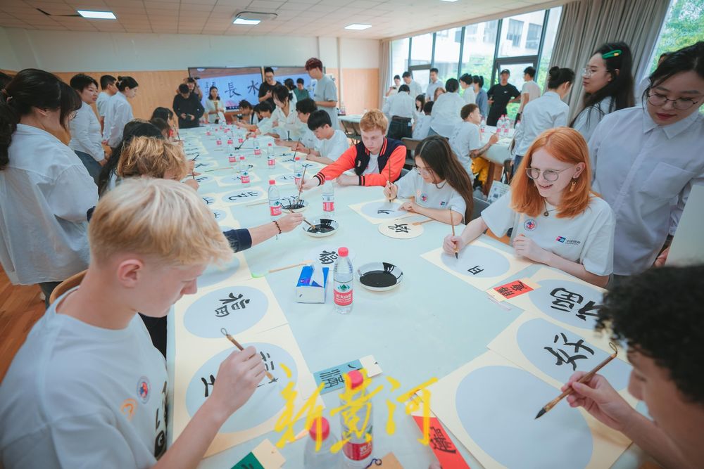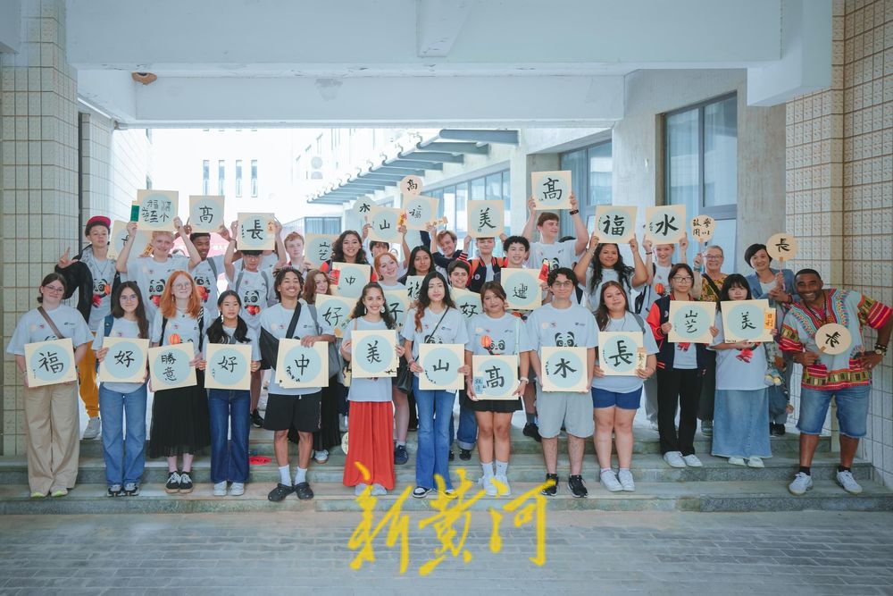 在书法学院,老师详细介绍了中国书法知识以及汉字书写的握笔姿势、坐姿、书写要领等,美方同学们在书法学院学生的引导下,写下了“中”“美”“山”“高”“水”“长”“好”“福”等有美好寓意的汉字。