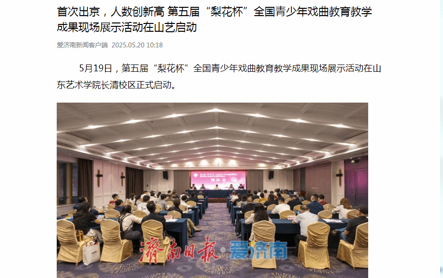 【济南日报·爱济南】首次出京,人数创新高 第五届“梨花杯”全国青少年戏曲教育教学成果现场展示活动在山艺启动