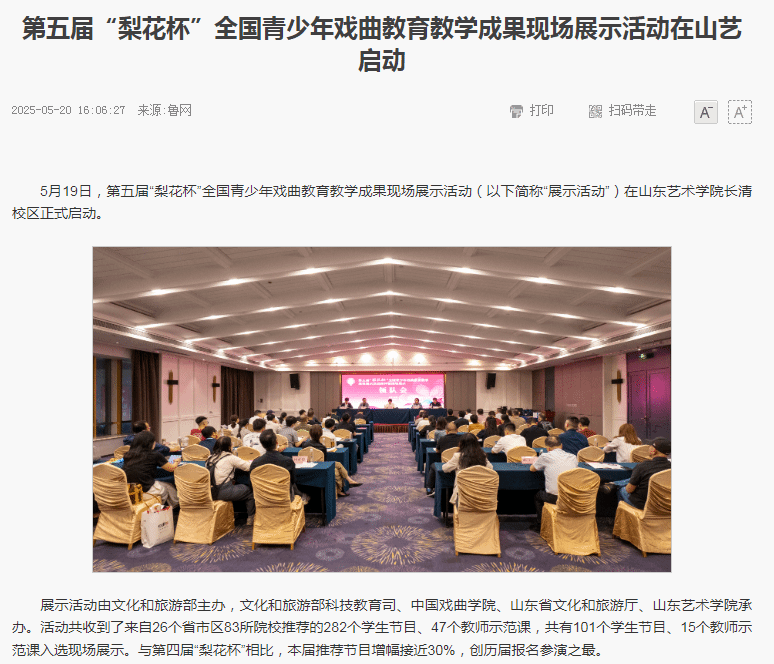 【鲁网】第五届“梨花杯”全国青少年戏曲教育教学成果现场展示活动在山艺启动