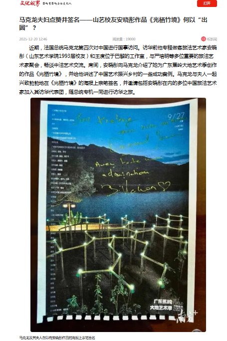 【文化视界】马克龙夫妇点赞并签名——山艺校友安晓彤作品《光栖竹境》何以“出圈”?