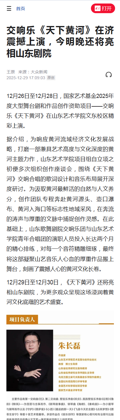 【大众新闻客户端】交响乐《天下黄河》在济震撼上演,今明晚还将亮相山东剧院