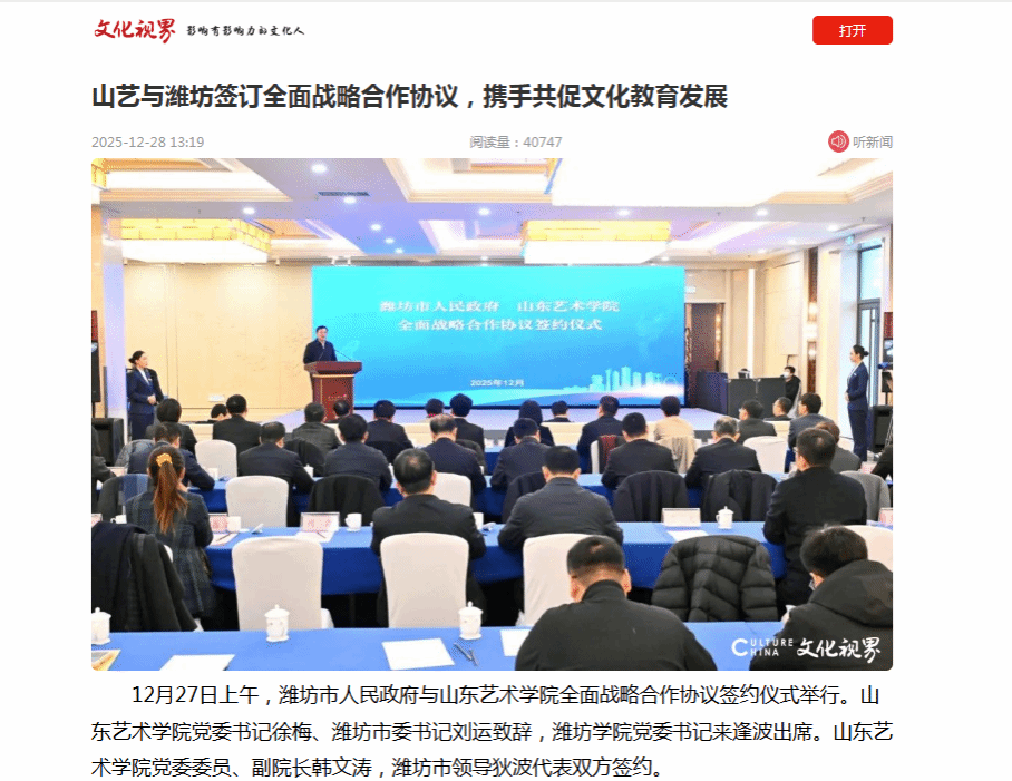 【文化视界】山艺与潍坊签订全面战略合作协议,携手共促文化教育发展