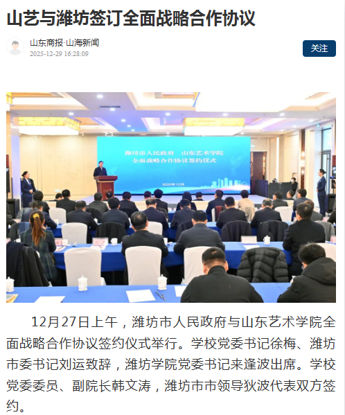 【山东商报】山艺与潍坊签订全面战略合作协议