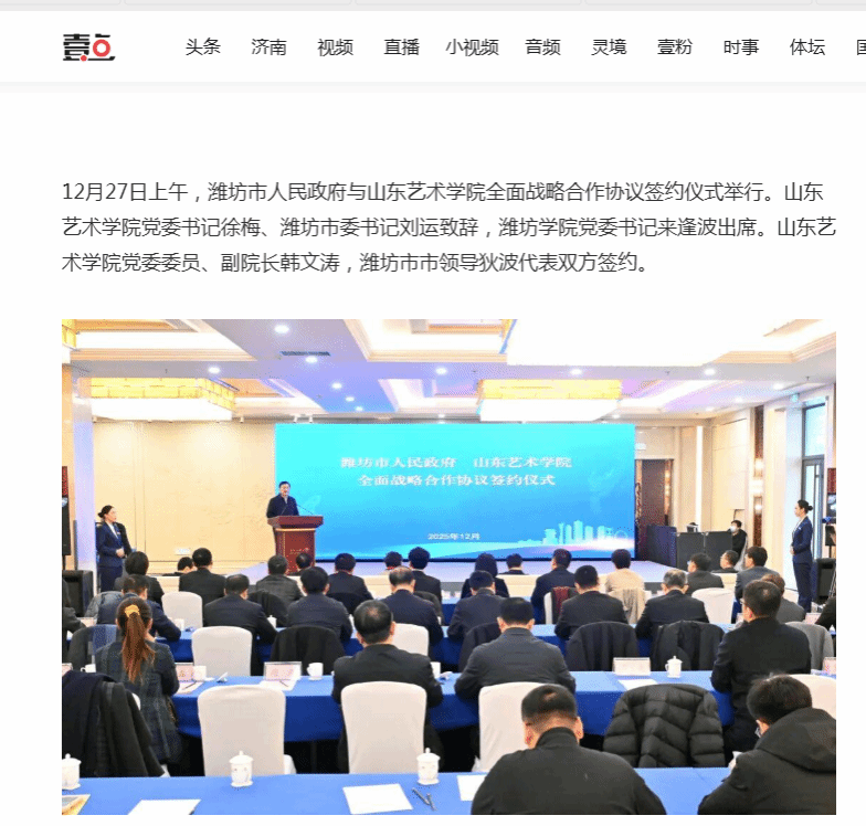 【齐鲁壹点】山艺与潍坊签订全面战略合作协议,共筑艺术教育实践教学高地