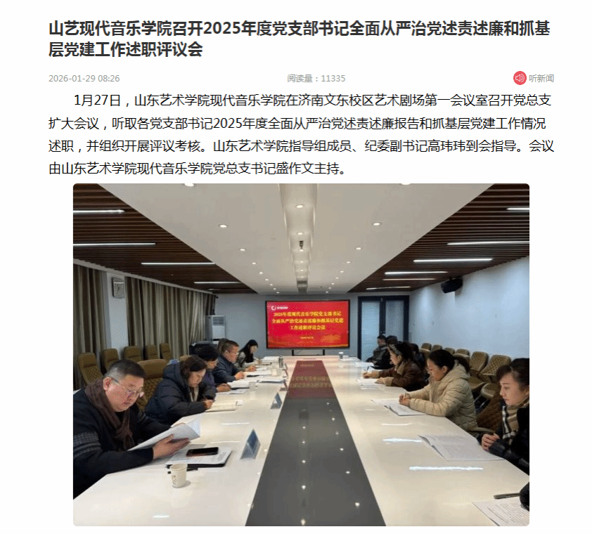 【文化视界】山艺现代音乐学院召开2025年度党支部书记全面从严治党述责述廉和抓基层党建工作述职评议会