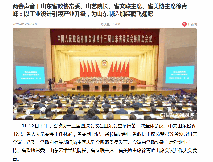 【文化视界】两会声音丨山东省政协常委、山艺院长、省文联主席、省美协主席徐青峰:以工业设计引领产业升级,为山东制造加装腾飞翅膀