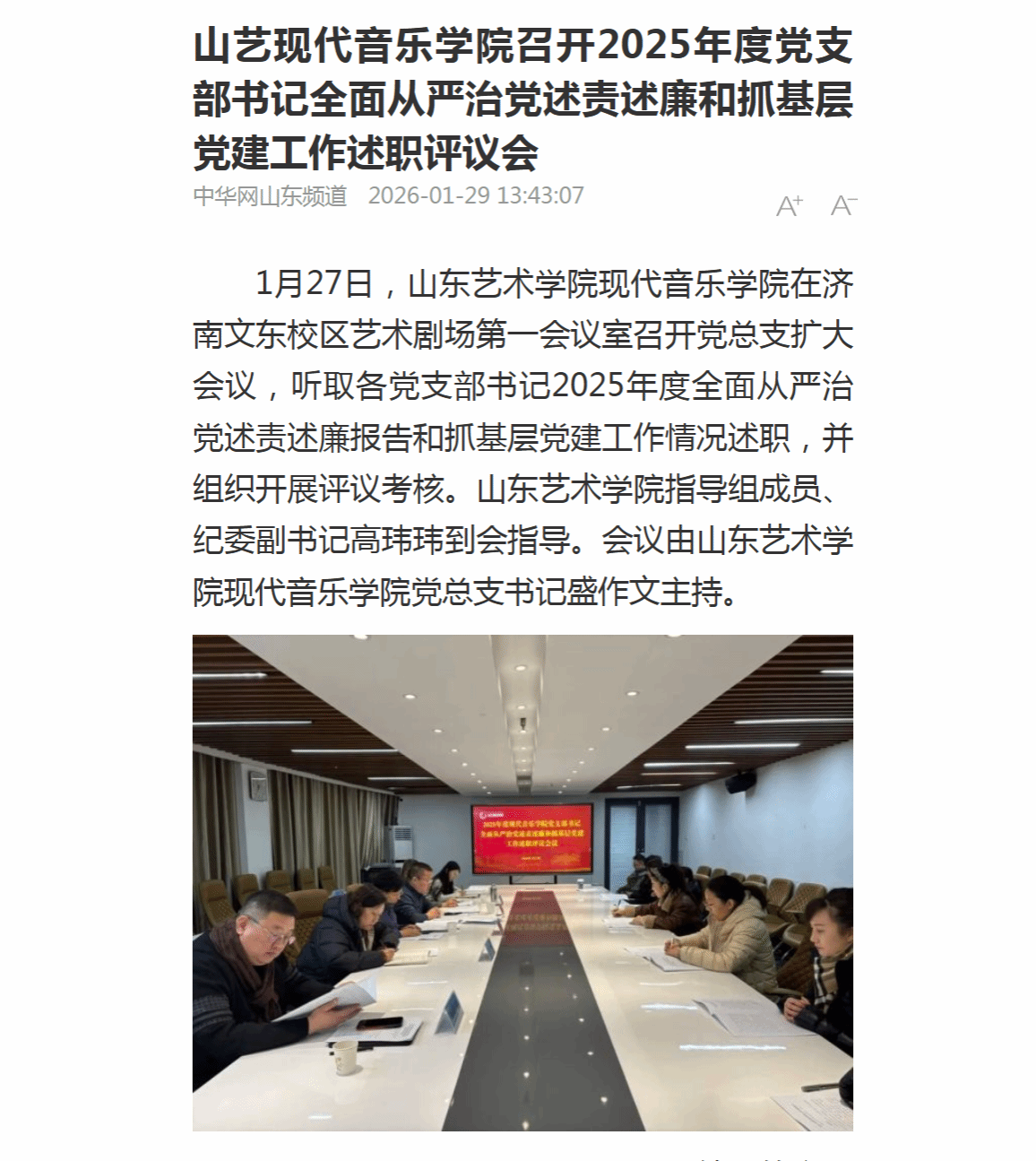 【中华网山东频道】山艺现代音乐学院召开2025年度党支部书记全面从严治党述责述廉和抓基层党建工作述职评议会