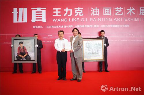 山东美术馆柳延春书记接受王力克作品捐赠,并向王力克先生颁发收藏证书。