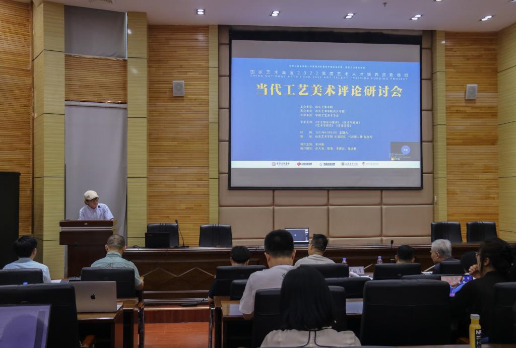 7月2日,“当代工艺美术评论研讨会”在长清校区办公楼二楼报告厅举行。中国艺术研究院研究员孙建君、山东工艺美术学院人文学院院长徐磊、《美术》杂志编辑部主任吴端涛、《美术》杂志编辑杨灿伟、我校艺术管理学院教授李新华,学校科研处、艺术实践与创作处、设计学院负责人等参加研讨会。