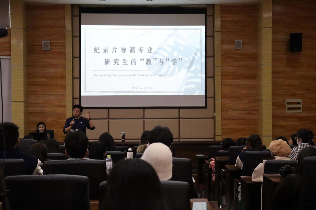 王向群围绕纪录片导演专业研究生的“教”与“学”进行了深入阐释。他结合担任硕士生老师以来的教学指导经验,分析了纪录片导演专业研究生学习中存在的基本功匮乏、知识面窄、对生活不敏感、主动学习能差等问题,介绍了行之有效的训练方法,强调了“选题”的重要性。王向群指出,作为老师要时常反思自己的教学方式,“永远不要低估学生的领悟力与创作力;永远不要亲自上手帮助学生完成作品。”“每一次错误指导,都会剥夺学生一次正确表达自己的机会”。王向群还就专业学习、纪录片创作等问题与同学们进行了交流互动。