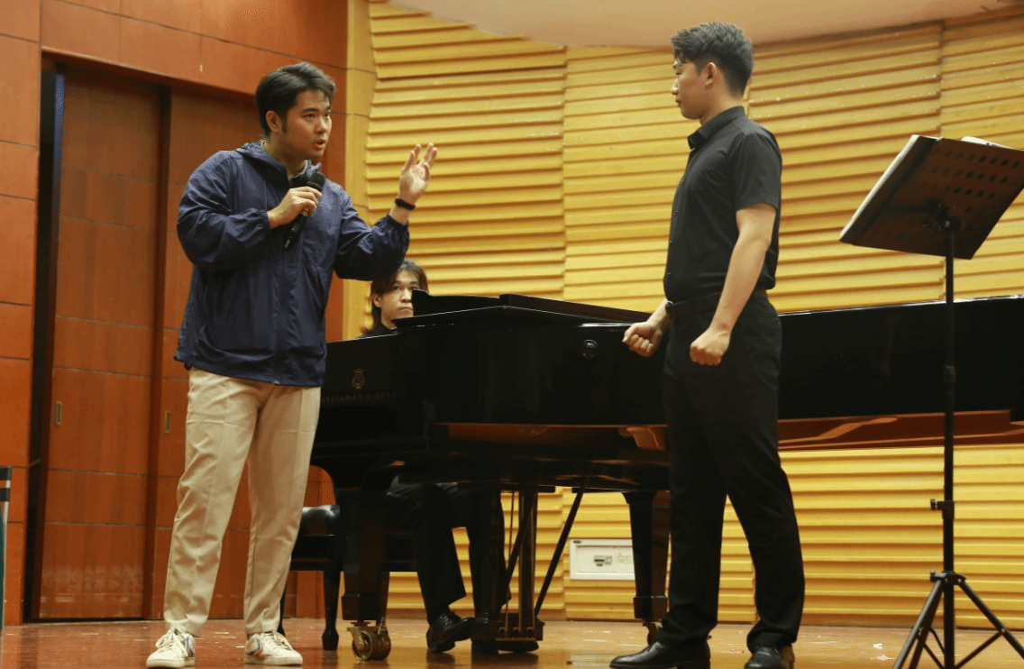 课上,林子豪以其独到的音乐见解和丰富的演唱经验,从情感表达、演唱技术、艺术处理和舞台表现等多个角度,分别针对六位同学演唱的《人们已睡了》《转向他注视着他》《像那潇洒的帕里第》《谁要找吉普赛姑娘》《沸腾的激动心灵》《你赢得了诉讼》等不同风格的作品进行讲解。他强调,要遵循乐谱,将宏观的声音和微观的声音形成纵向和横向的二维坐标系,根据不同的音乐风格、作曲家要表达的内容,灵活处理气息、声音、咬字,帮助同学们迅速理解声乐表演中的技术与情感,促进相互交流融合。