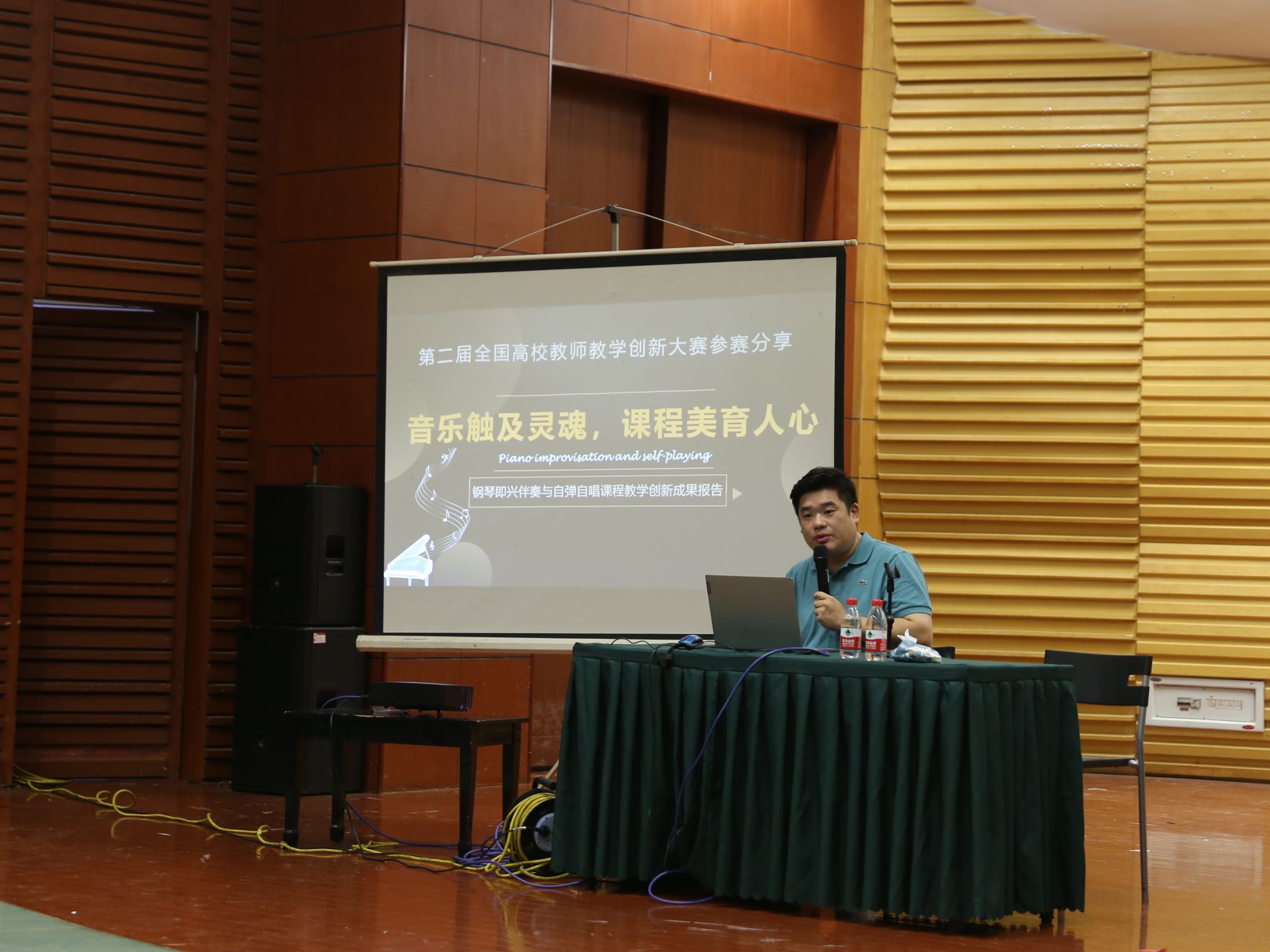 他以参加全国高校教师教学创新大赛获奖课程《钢琴即兴伴奏与自弹自唱》为例,分享了自己的参赛经验,阐述了教学设计中的核心内容,即课程教学中的真实“问题”、课程教学目标、课程教学的创新思路与举措、丰富的考核评价数据、课程创新效果及推广应用等,为音乐教学改革创新拓宽了思路。讲座过程中,王宇航还进行了说课示范。