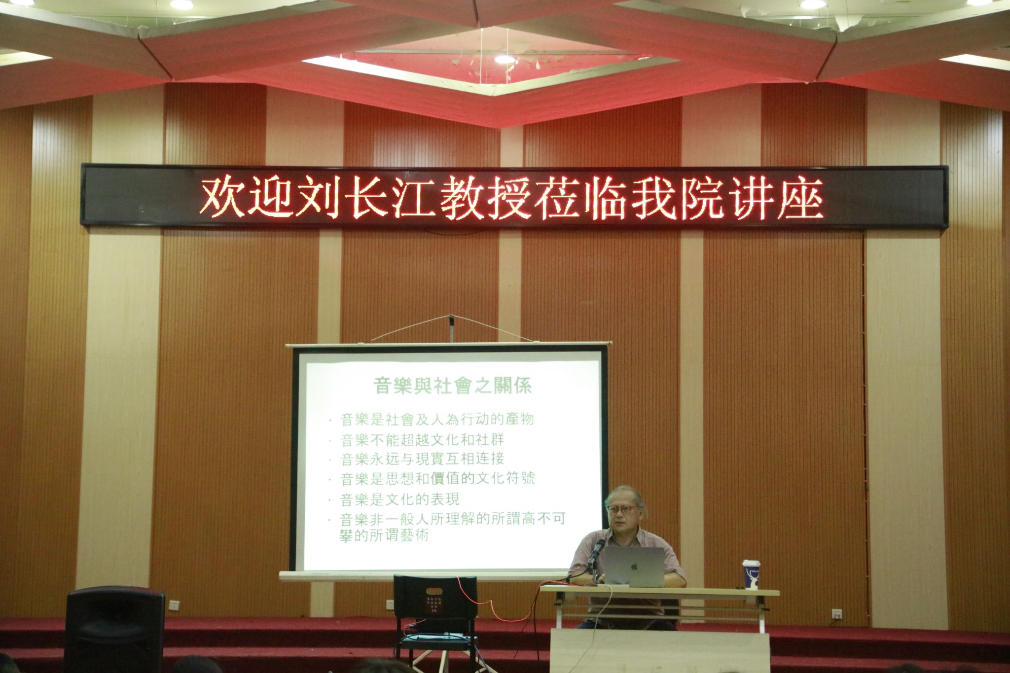 刘长江教授作了题为《再思考中国音乐》(Reconceptualizing Chinese Music)的学术讲座,他以音乐发展过程中社会文化环境因素为切入点,通过讲解音乐知识,阐述中国音乐与社会环境的互动关系,运用现代音响学和音乐人类学解析现代化、音乐身份、音乐与理念等问题,探讨中国音乐形成脉络的另一方向及思考框架,给师生一种新的研究思路和启迪。