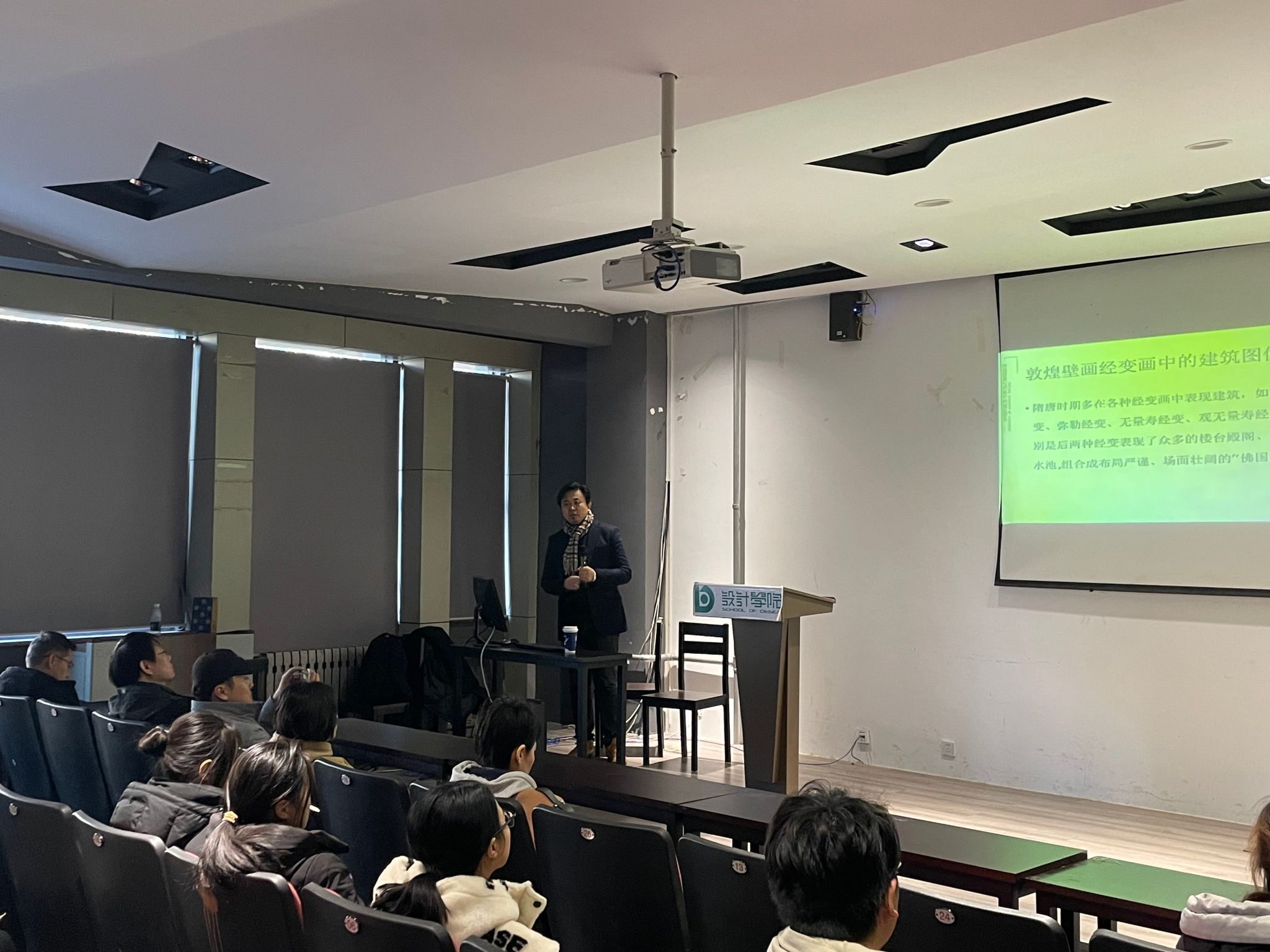 11月27日,北京理工大学教授、博士生导师姚健应邀来我校为设计学院师生作了题为《敦煌艺术图像中的环境设计》的学术讲座,参加了环艺教学研讨会。
