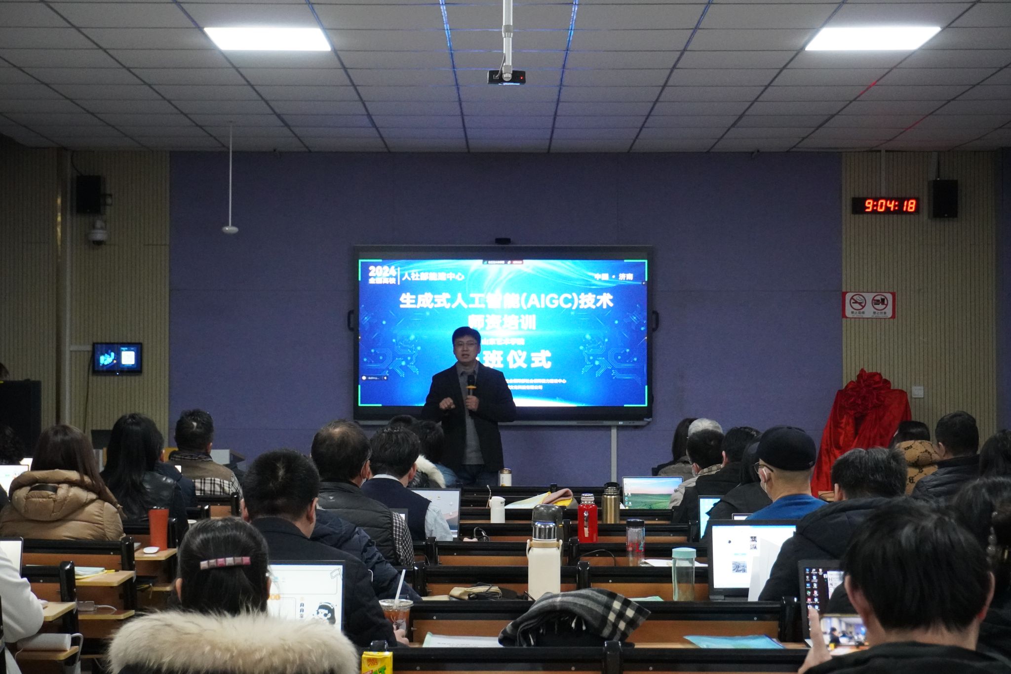 12月21日,山东省首家AIGC技术证书考试培训基地落户我校,并举行生成式人工智能(AIGC)技术师资培训班开班仪式。中国科学院大学教授陈曙东、北京工业大学元宇宙云图智能研究院执行院长何伟,学校各单位、部门负责人及教师50余人参加了培训。