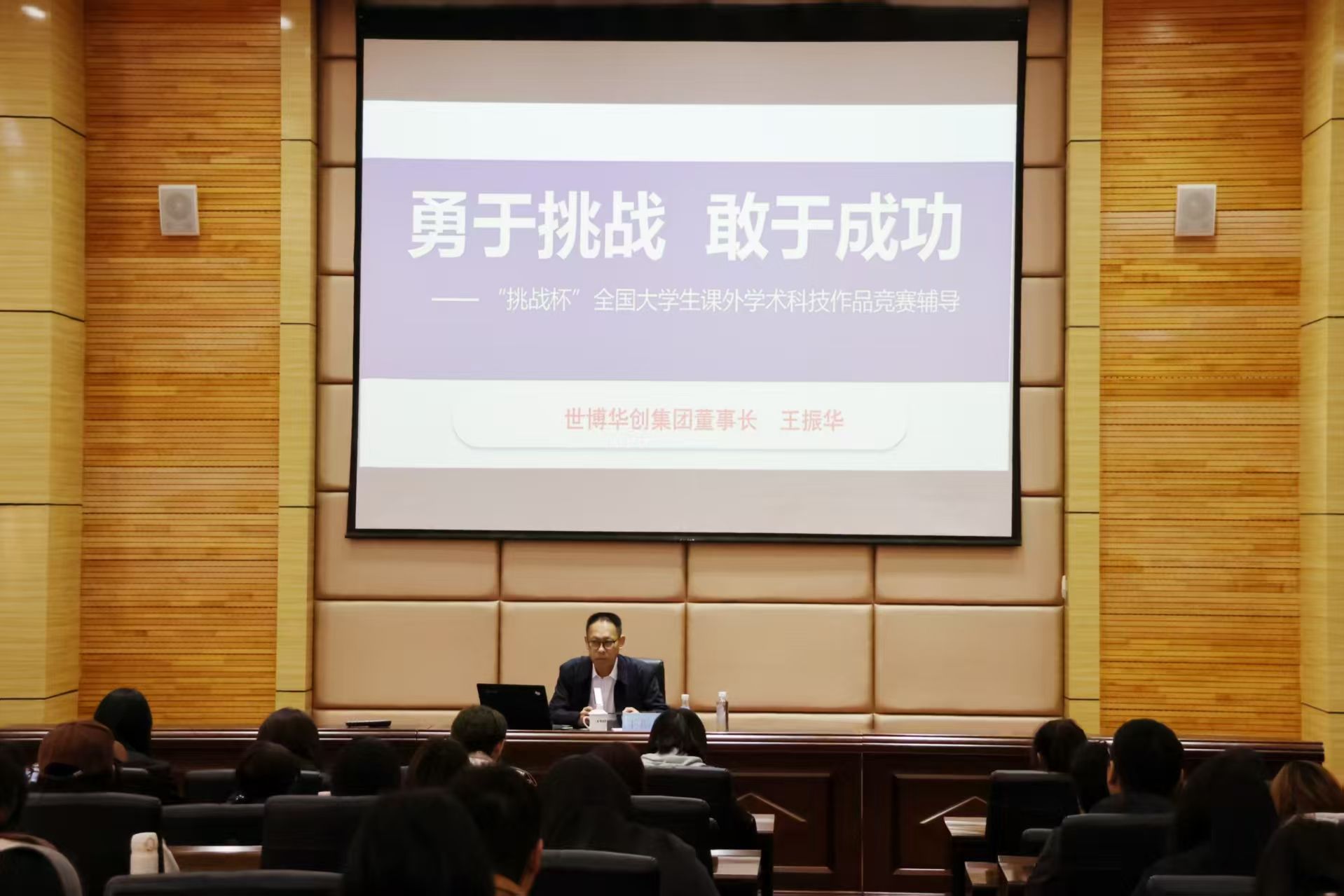 3月14日,校团委在长清校区办公楼报告厅举办第十九届“挑战杯”全国大学生课外学术科技作品竞赛专题辅导。我校1994级校友、团中央特聘创新创业导师王振华受邀主讲,150余名师生参加培训。