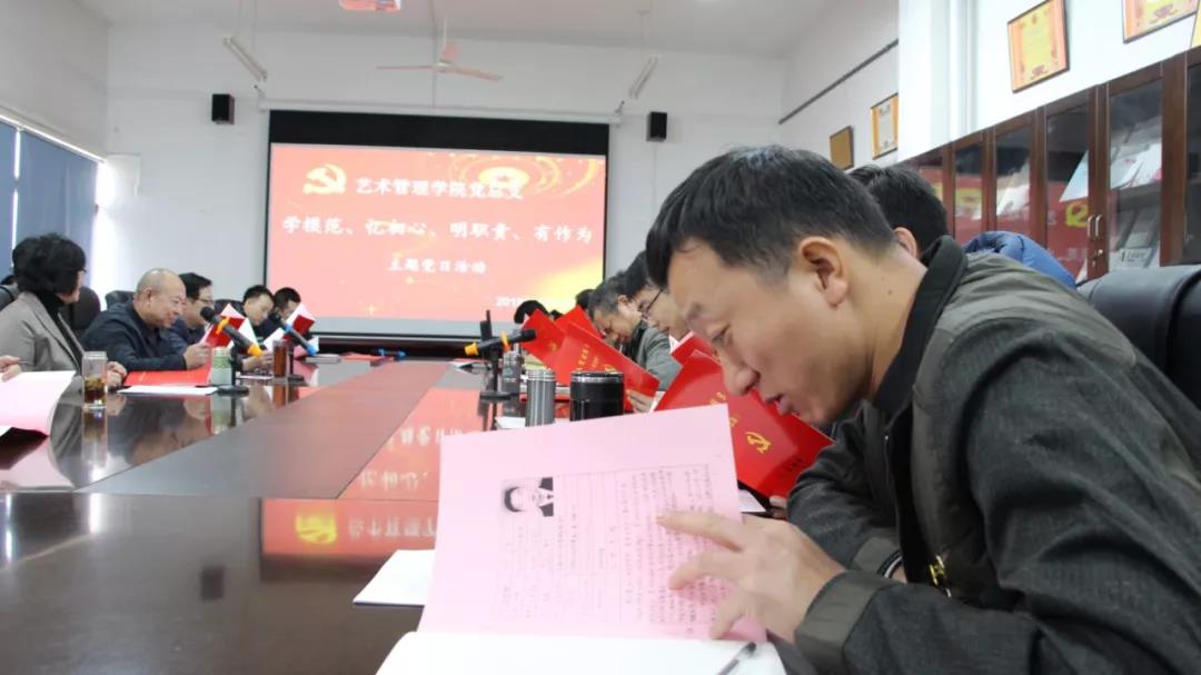 为学习模范精神,回忆入党初心,激励大家明确职责,在各自的岗位上敬业奉献、再创佳绩,12月27日上午,艺术管理学院党总支在学院会议室举行了“学模范、忆初心、明职责、有作为”主题党日活动。会议由艺术管理学院院长王凤苓主持,艺术管理学院全体师生党员及预备党员共计40余人参加活动。