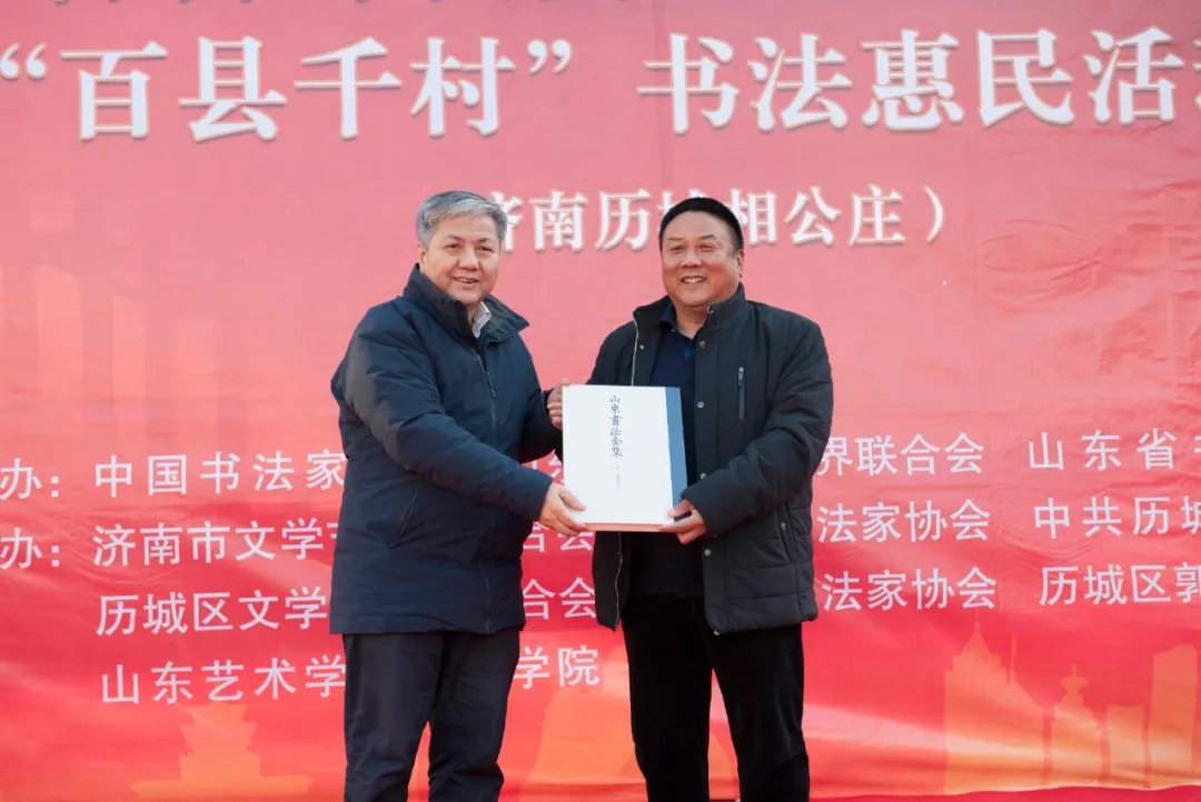 活动中,顾亚龙向相公庄村捐赠了《山东书法全集》,书法学院教师王谦、贾长庆等20余位书法家现场挥毫泼墨,为村民创作春联、“福”字、书法作品近千件,并举办了书法大讲堂。