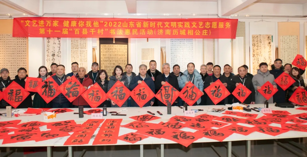 12月28日,由中国书协、山东省文联、山东省书协联合主办,我校书法学院参与承办的“文艺进万家 健康你我他”2022山东省新时代文明实践文艺志愿服务——第十一届“百县千村”书法惠民活动在全省16市同步启动。本次活动的济南主会场启动仪式在历城区郭店街道相公庄村举行。山东省文联党组成员、副主席矫红,中国书协副主席、省文联副主席、省书协主席、山东艺术学院书法学院院长顾亚龙出席。省内各级有关单位领导、嘉宾,新闻媒体,书法学院师生代表200余人参加活动。
