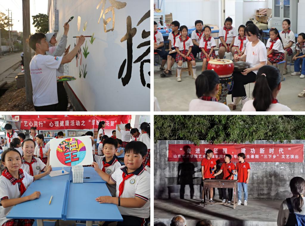 本次社会实践活动包括主题墙绘、心理健康活动和文艺演出三项内容。志愿服务队提前选定墙绘图案,克服了雨天、酷暑等困难,绘制出以党建和乡村文化为主题的14幅精美墙绘。艺术心理治疗方向研究生充分发挥专业特色,在沙土镇中心小学开展了“艺心同行”心理健康活动之曼陀罗绘画和音乐鼓圈活动,让小学生们感受色彩,体验多元乐器,勇敢展现自己。队员们还精心准备了一场文艺演出,歌曲《一起向未来》《我和我的祖国》、广场舞《酒醉的蝴蝶》、朗诵《永远跟党走》等节目受到了村民们的热烈欢迎。