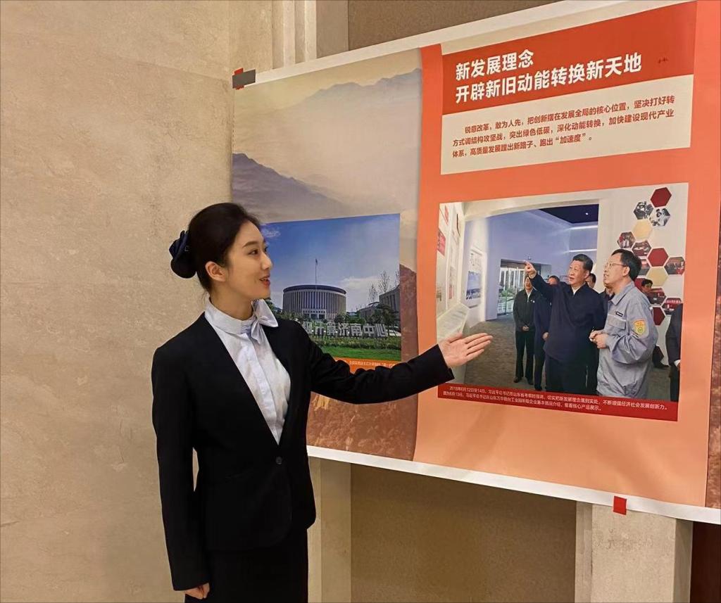 9月28日,为迎接党的二十大胜利召开,“奋进新时代”主题成就展在北京展览馆隆重开幕。我校戏剧学院播音与主持专业学生王子星、国际艺术交流学院戏剧影视美术设计专业(化妆美容方向)学生岳阳参加此次展览山东展区的讲解工作。