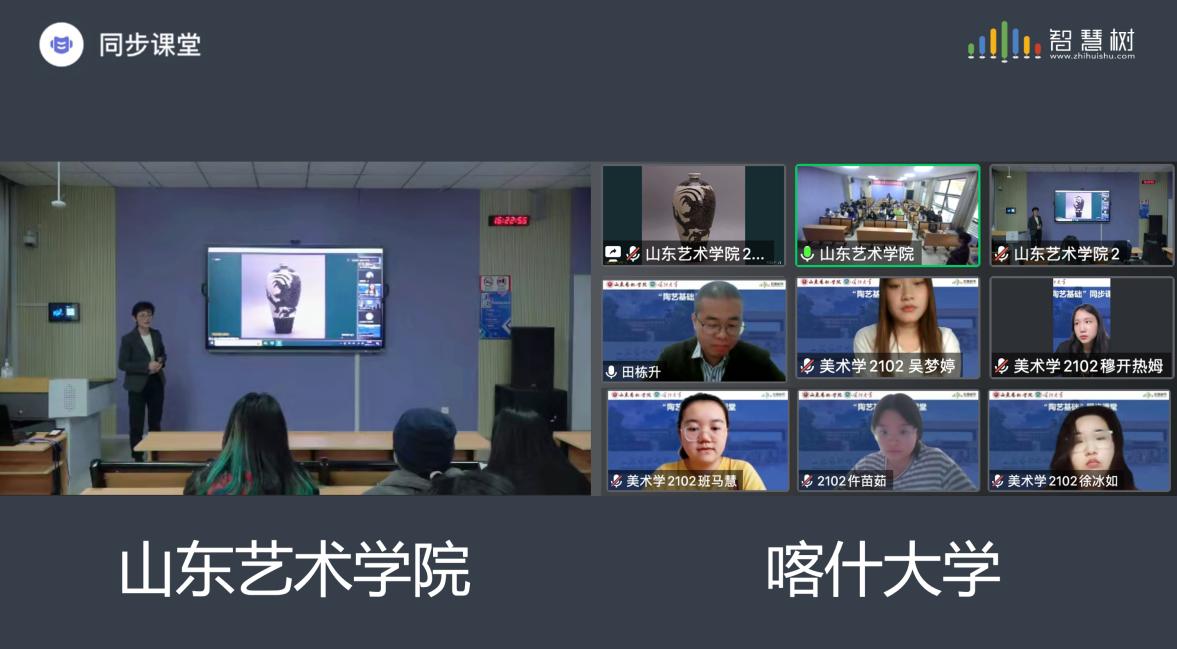 11月11日,我校远宏教授教学团队在长清校区通过智慧树平台,与新疆维吾尔自治区喀什大学开展《陶艺基础》课程同步课堂教学活动。喀什大学美术与设计学院院长薛云祥教授,《陶艺基础》课程主讲教师田栋升参加活动,我校设计学院陶艺专业2021级学生与喀什大学美术学专业2102班学生线上同步听讲。