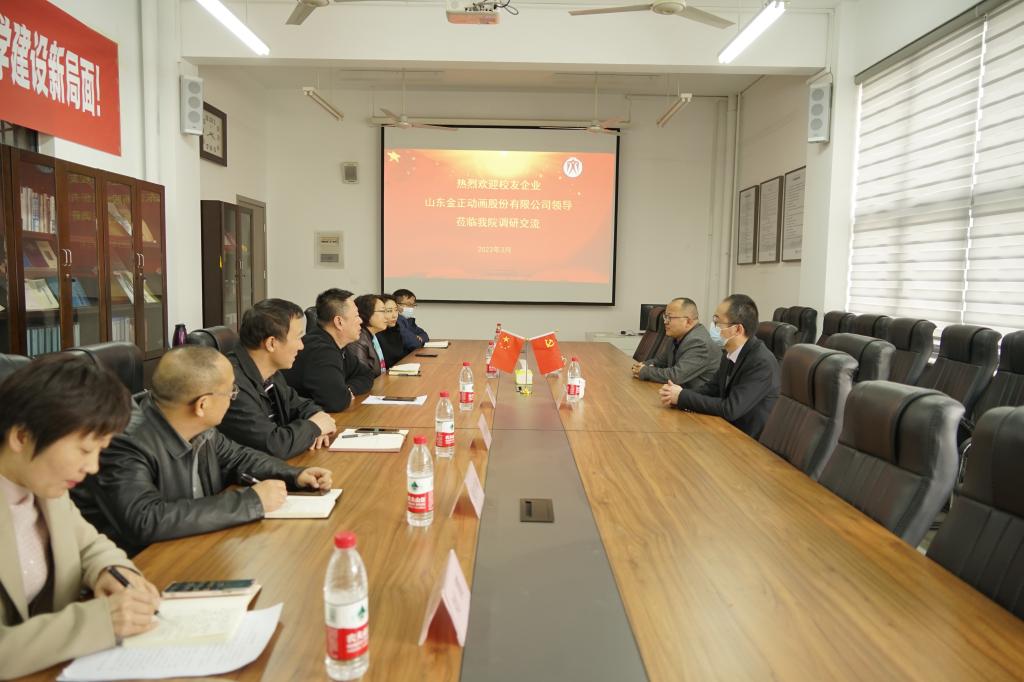 艺术管理学院负责人介绍了学院结合专业特点开展“访企拓岗”促就业专项行动的基本情况,学院近年来在学科建设、人才培养、教学实践等方面的基本做法和主要成绩,以及开展建院30周年纪念活动和校友大讲堂的有关情况等,对山东金正动画股份有限公司取得的成绩表示肯定,对任家斌长期以来关心母校建设、关注学院发展的深厚情怀表示赞赏和感谢。任家斌表示,母校始终是自己的力量之源,在校所学是个人事业发展的厚重基石,作为艺术管理学院的创新创业导师,将尽自己所能,与学弟学妹们加强交流,帮助他们厘清专业发展方向,明晰职业生涯规划,定准位、做到位,助力学校2023届毕业生高质量就业。双方围绕合作共建实习实践基地、开展产学研融合、科研项目合作等进行了深入交流。