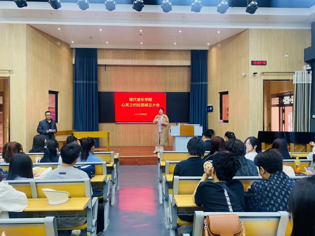 5月11日下午,现代音乐学院心灵之约社团成立大会在文东校区举行。学生处相关负责人,现代音乐学院党总支负责人,社团指导老师、现代音乐学院副教授陈俊伊,心理健康教育中心和辅导员代表,现代音乐学院师生200余人参加活动。