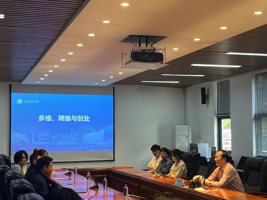 5月12日,设计学院1990级环境艺术设计专业校友周鲁平应邀在长清校区以“多维、降维与创业”为题与我校师生进行座谈交流。设计学院党委相关负责人,环境设计系部分师生参加座谈会。