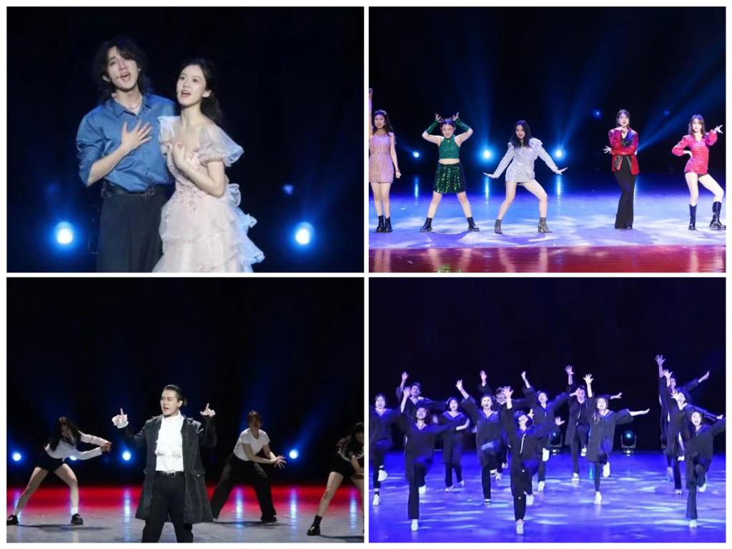由2023届音乐剧专业毕业生表演的音乐剧《歌舞青春》中的经典唱跳片段《High School Musical》活力四射,拉开了演出的序幕。同学们表演了《春风十里》《指日可待》《将死之人》《Alexander Hamilton》《Letemps des cathédrales》等二十多首中外经典音乐剧唱段,生动展示了音乐剧专业全体师生十年深耕的教学成果。最后,音乐剧专业全体学生为观众演唱了音乐剧《蝶》中的选段《我相信,于是我坚持》,演出在热烈的掌声中走向尾声。