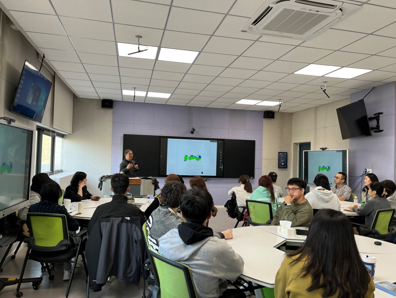 10月23日,设计学院在长清校区举办“名师工作坊”教学活动。活动为期四周,首场教学由北京印刷学院教授韩济平主讲,设计学院视觉传达设计系师生35人参加活动。