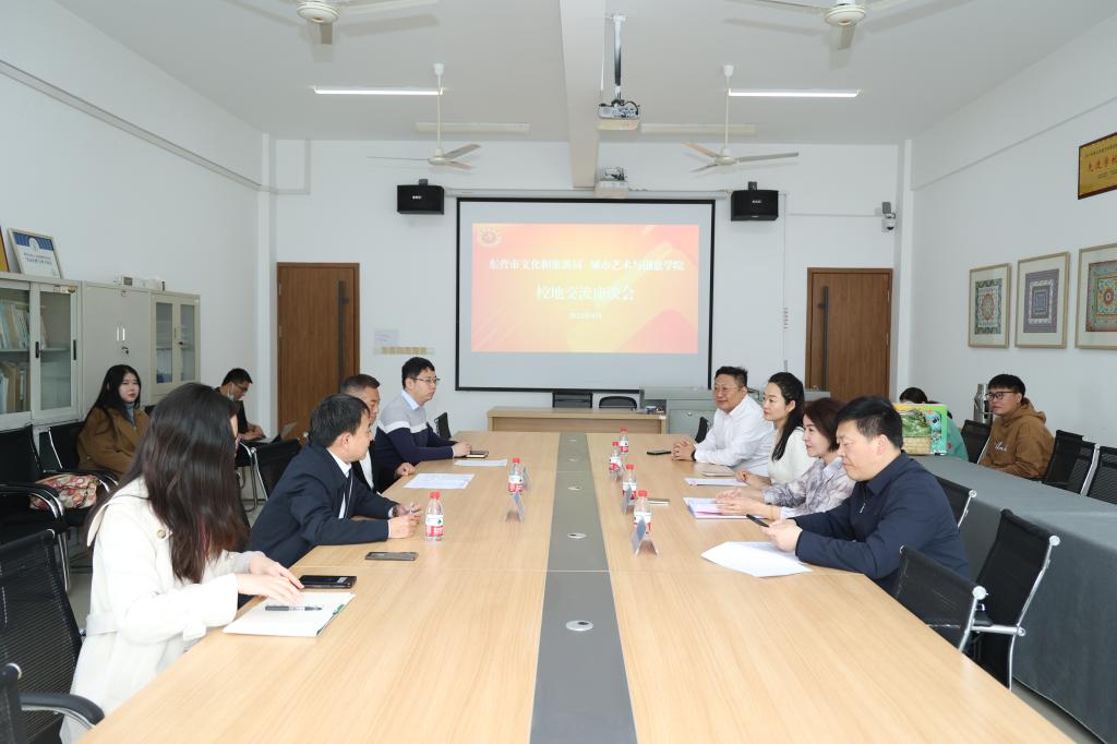 4月10日,东营市文化和旅游局来我校城市艺术与创意学院调研交流,举行校地合作座谈会,东营市文化和旅游局党组成员、副局长阿娜古·吐鲁普,东营市文化活动中心副主任李奎斌,东营市文化和旅游局宣传推广科科长、东营文旅推介官吴婷,城市艺术与创意学院党总支负责人、团总支相关人员参加。