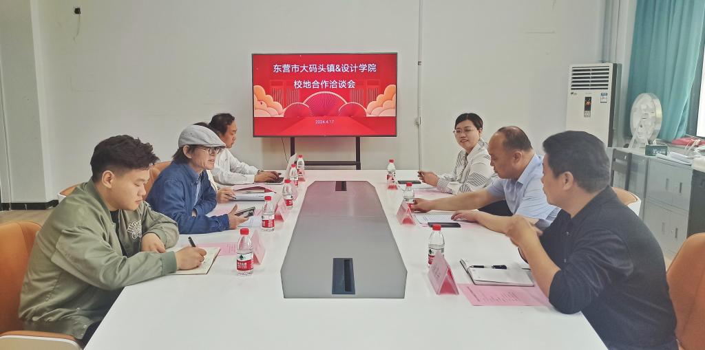 4月17日,东营市大码头镇党委副书记、政协委员联络室主任谷晓彬,大大码头镇党委委员刘青,大码头苇编第六代代表性传承人、东营市工艺美术协会会长、黄蓝汇工艺品有限公司总经理徐尊兴来我校设计学院洽谈校地合作。设计学院党政负责人、相关老师参加活动。
