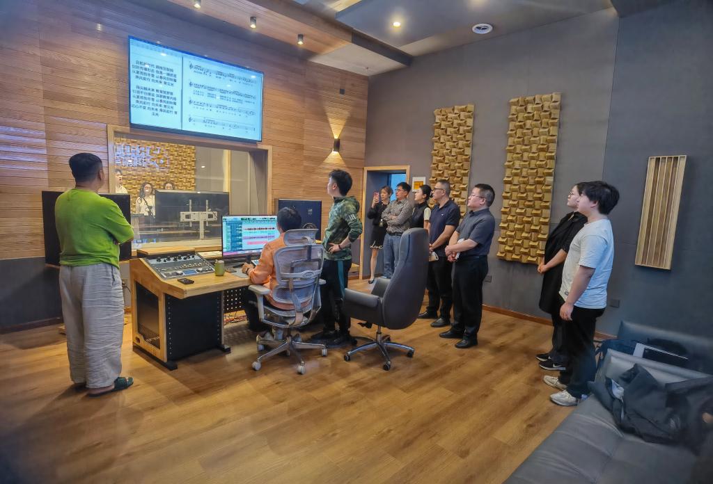 座谈结束后,现代音乐学院一行参观了溶洞文化传媒有限公司办公区、录音棚等处。