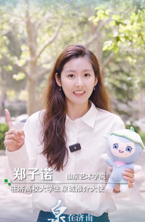 郑子诺表示,作为济南人、山艺人,她从小耳濡目染,深切感悟到这座历史名城深厚的文化底蕴,此次能够为家乡代言,肩负使命,倍感自豪,将全心投入,融合播音专业特长,录制“爱泉城、讲济南”vlog,借助新媒体平台,讲好济南故事、传播济南声音,在服务社会过程中展现山艺学子的风采。