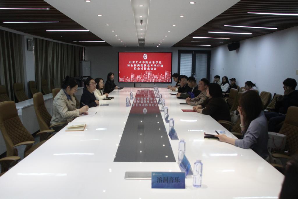 4月23日上午,音乐学院在文东校区综合楼一楼会议室召开访企拓岗促就业专项行动——校企对接座谈会。盐城市歌舞剧院、镇江市艺术剧院等十余家用人单位参加座谈会。