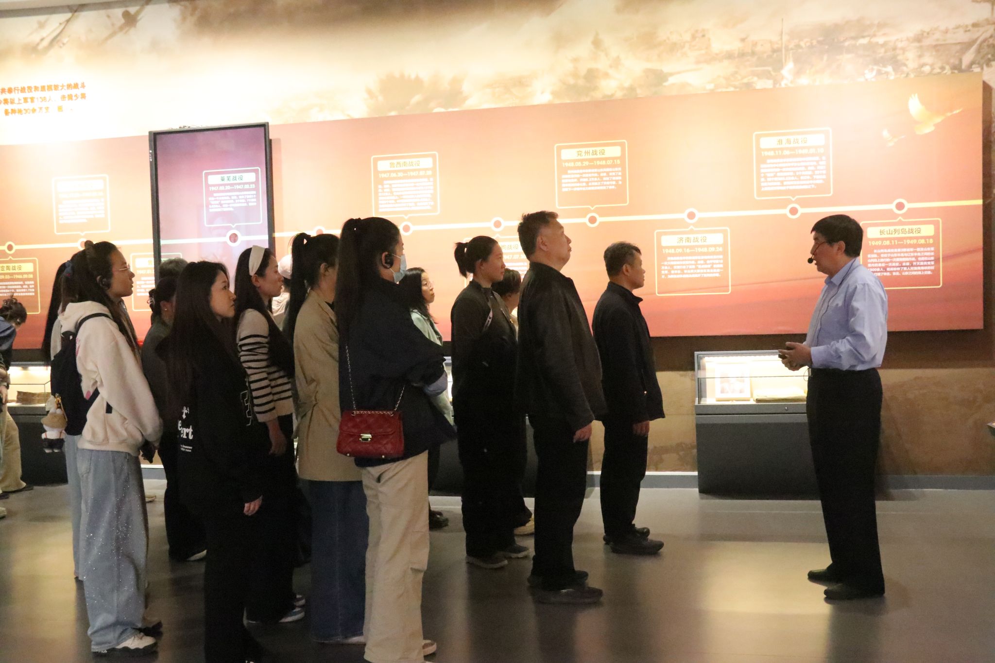 在省委老干部局原一级巡视员、山东老战士纪念广场管委会主任邓海燕讲解下,师生党员深入了解了山东革命的光辉历程。看着一幅幅泛黄的历史照片、一件件斑驳的革命文物、一幕幕还原的战斗场景,师生驻足凝视,认真聆听着革命年代里军民同心、水乳交融、生死与共的感人故事,重温那段浴血奋战、砥砺前行的峥嵘岁月。在纪念广场,大家整齐列队,向革命先烈敬献鲜花、鞠躬默哀。党员们细心擦拭纪念碑,以崇敬之心守护英烈荣光。