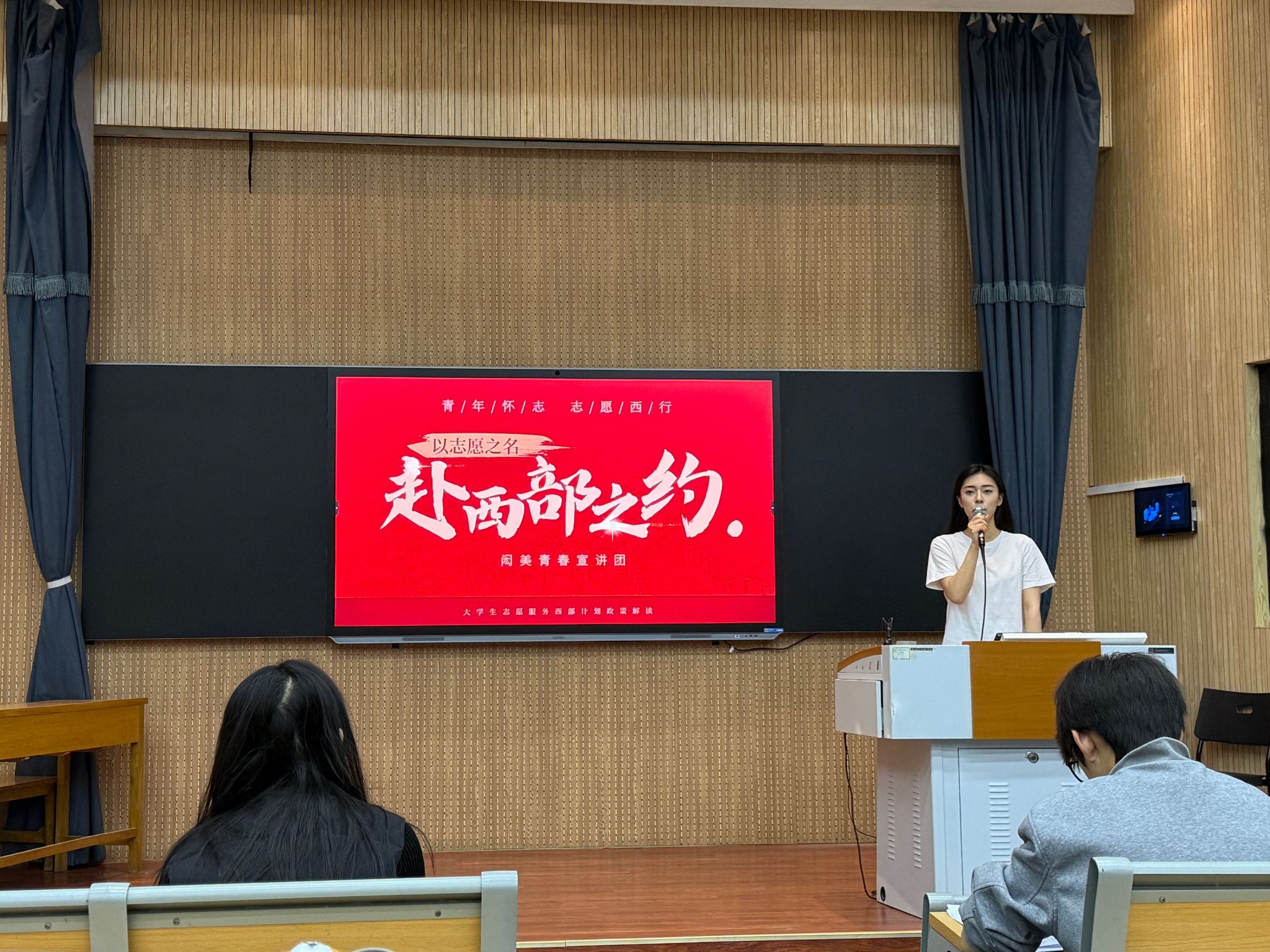 下午,西部计划就业政策宣讲会在文东校区报告厅举行。校团委西部计划宣讲团成员面向有意愿服务基层的毕业生,系统解读西部计划招募政策、报名流程、服务岗位、保障待遇及基层成长发展前景,引导广大毕业生响应国家号召,立足专业所长,主动奔赴西部、扎根基层,在服务国家建设、助力基层发展中实现人生价值,进一步拓宽毕业生多元化就业路径。