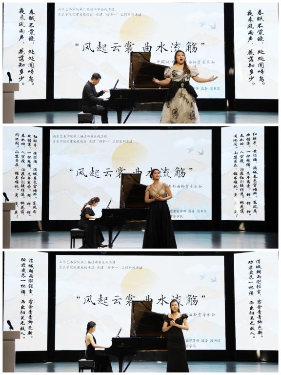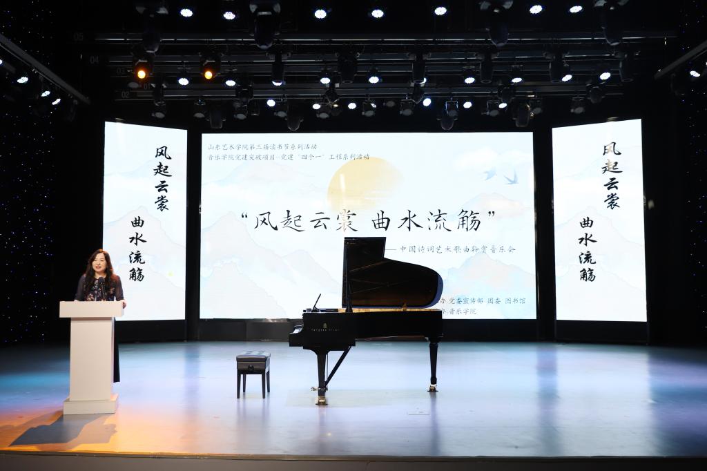 5月10日,“风起云裳 曲水流觞”中国诗词艺术歌曲聆赏音乐会在长清校区星空演播厅举办。学校职能部门、二级学院相关负责同志、师生代表100余人观看音乐会。音乐学院王东涛教授担任导聆。