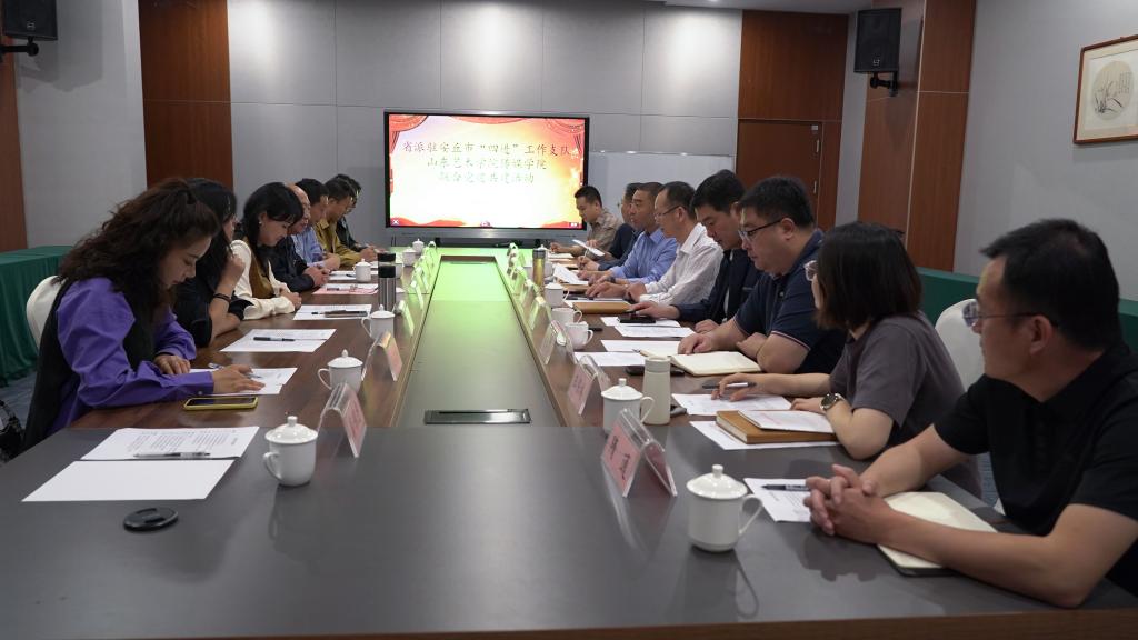 5月12日,传媒学院党委与省派驻安丘市“四进”工作支队党支部在支队驻地召开党建联建共建座谈会。省派驻安丘市“四进”工作支队队长、省公安厅刑事侦查总队二级高级警长孙作轩,省建设培训与执业资格注册中心万明清,省卫生健康委办公室四级调研员肖江苏,省产权交易集团创新孵化中心李文彦,东营市乡村振兴局政策法规科隋通,齐鲁师范学院美术学院孟令强,安丘市人社局公共就业和人才服务中心史怀东,安丘市融媒体中心机关党委专职副书记张国栋,我校传媒学院相关负责人及教师参加座谈。