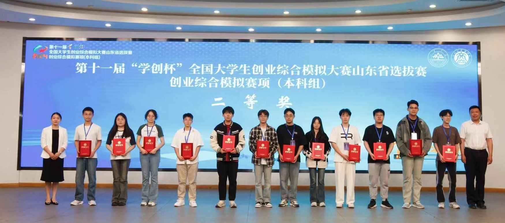 5月25日,马克思主义学院周天策、籍勇老师指导,艺术管理学院2023级艺术管理专业于梦蕾、传媒学院2023级广播电视编导专业韩在志组成的参赛团队在第十一届“学创杯”全国大学生创业综合模拟大赛山东省选拔赛中荣获二等奖。