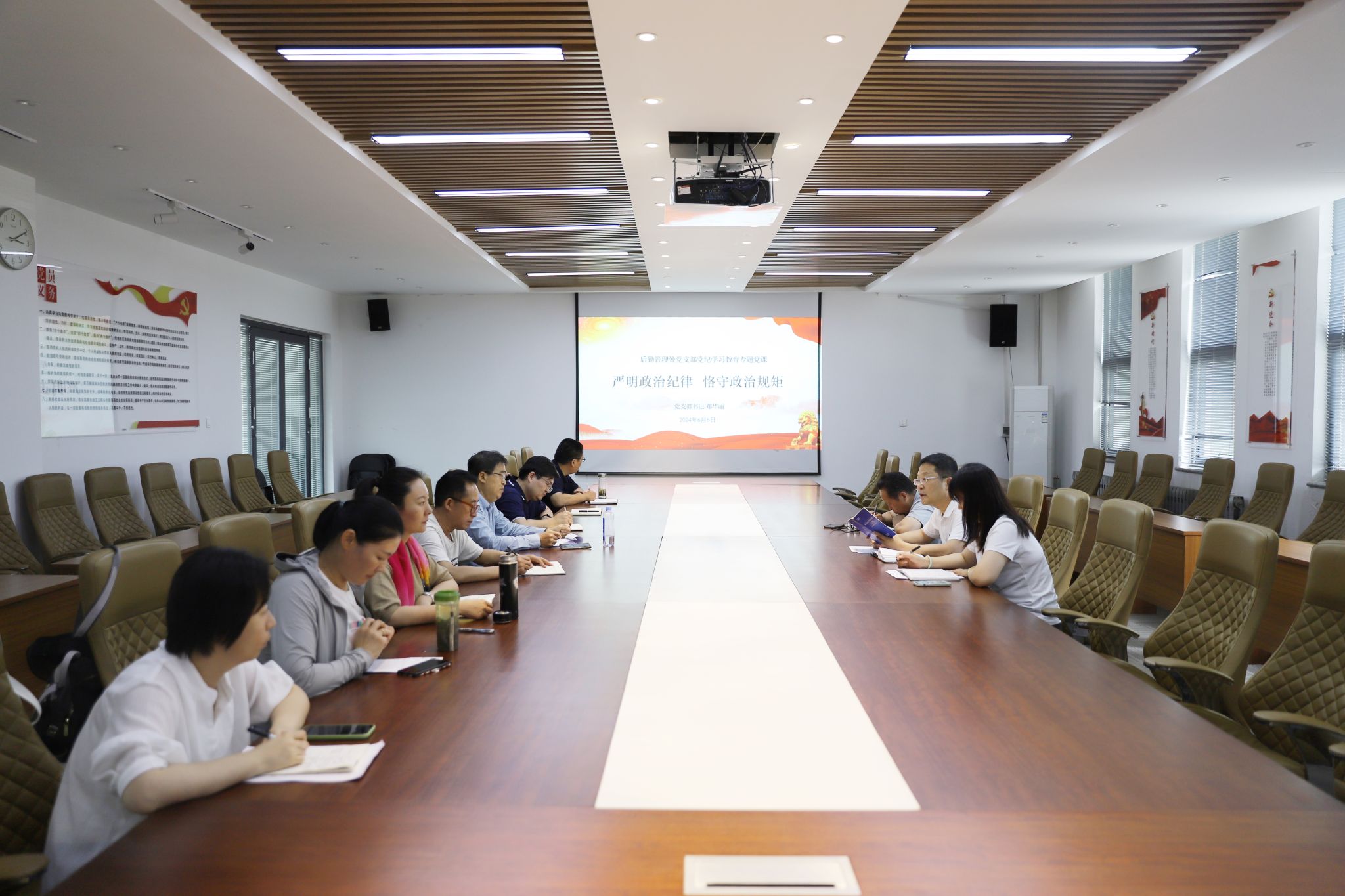 6月6日,后勤管理处党支部在长清校区开展党纪学习教育暨支部书记讲党课活动。