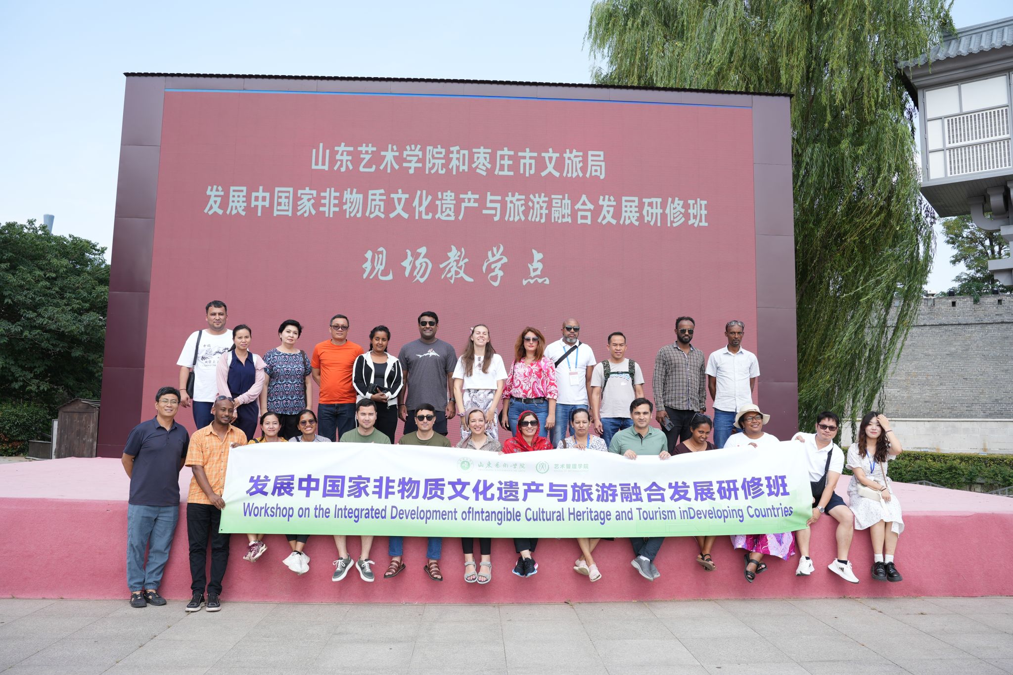 6月25日至28日,发展中国家非物质文化遗产与旅游融合发展研修班在我校举办。研修班的26名学员是来自斐济、埃及、南非、埃塞俄比亚、乌兹别克斯坦、拉脱维亚、柬埔寨、巴基斯坦等国家文化旅游、生态环保、文物档案等部门的官员和技术人员,来中国考察非遗和文化旅游融合发展情况,交流学习相关经验。研修培训期间,学员先后到济南市文化馆、百花洲传统工艺工作站、台儿庄古城等地考察调研,观摩体验济南木偶戏、济南皮影等非物质文化遗产。山东丰富的非物质文化遗产和文旅资源,好客山东的热情氛围和良好的文旅融合发展环境,给来自各国的学员留下了深刻印象。