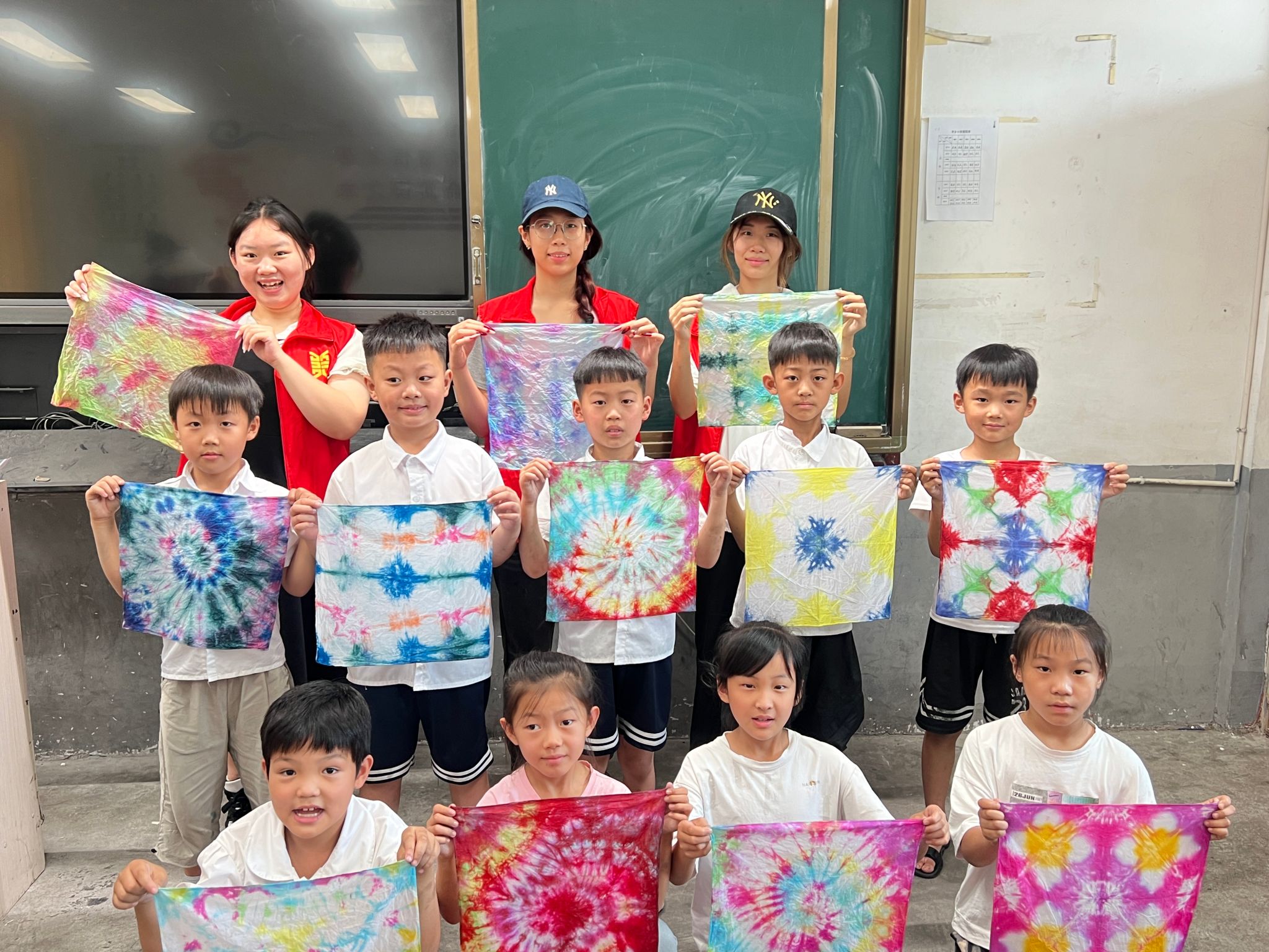 为进一步强化非物质文化遗产的保护与传承工作,志愿者在拳铺镇开展了一场别开生面的传统文化体验活动,讲述了漆扇的发展历史、配色方法和制作流程,以漆为笔,以水为墨,以扇为纸,带领孩子们制作出了专属于自己的工艺品,切身体验了非遗技艺。扎染体验活动中,志愿者使孩子们在一“扎”一“染”中体会到中国传统非遗文化的魅力,在寓教于乐中增强了对中华优秀传统文化的认知和理解。