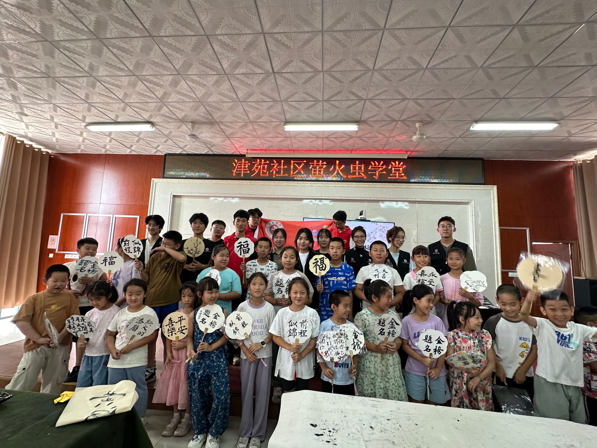 在东津渡创新创业基地和津苑社区“萤火虫学堂”,实践团开展宣讲和书法教学。通过红色故事、歌曲和公益课程,引导孩子们传承红色基因,厚植家国情怀,激发了孩子们对中华传统文化的热爱与尊重。
