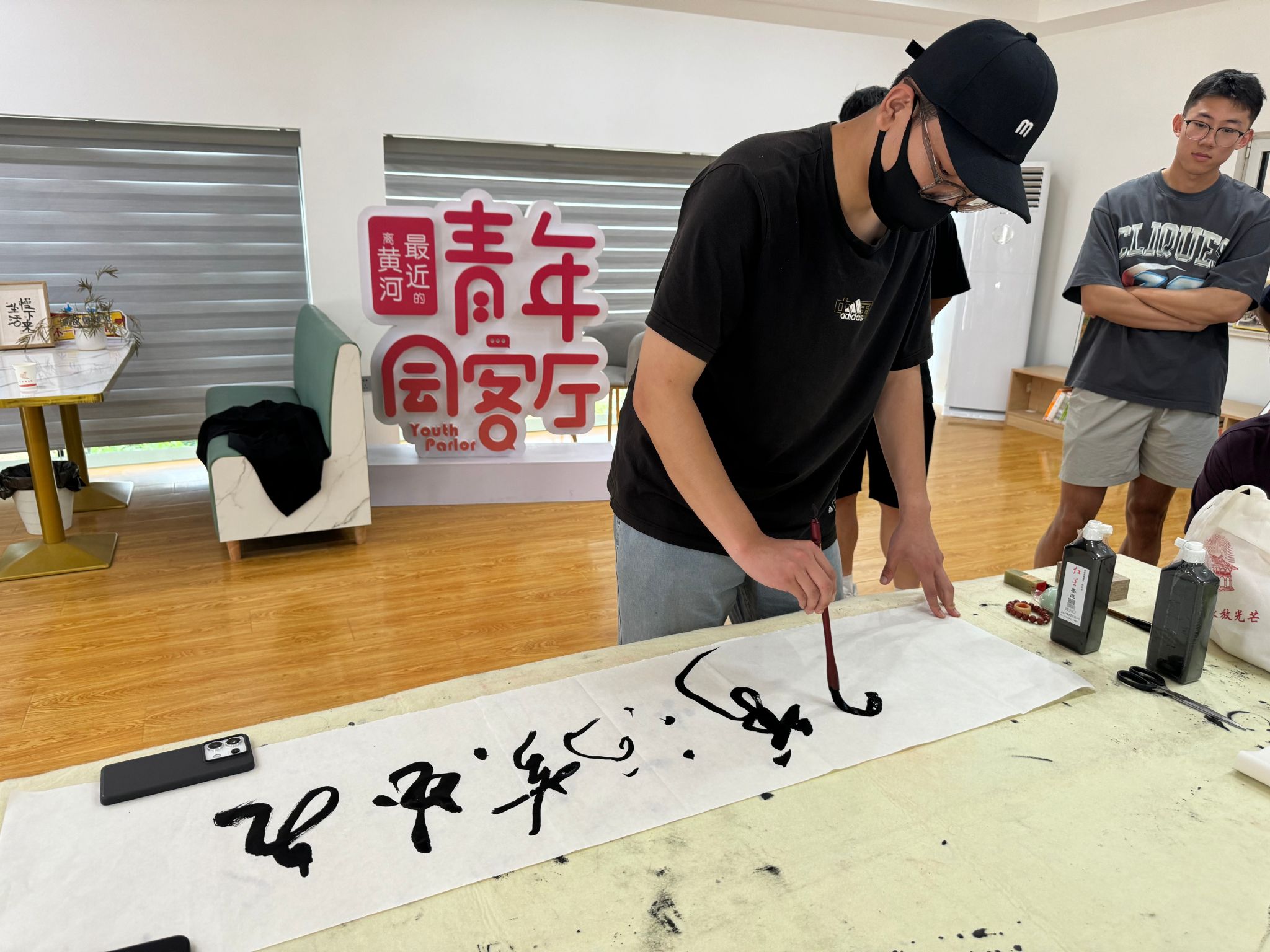 在黄河书屋,实践团成员观看宣传片,了解黄河是如何滋养一方水土,孕育出丰富多彩的非物质文化遗产。在黄河岸边,感实践团成员感受黄河作为中华民族母亲河的壮阔与伟岸,结合感悟现场创作了“九曲黄河万里沙”、“大美利津”、“青春利津”等作品。