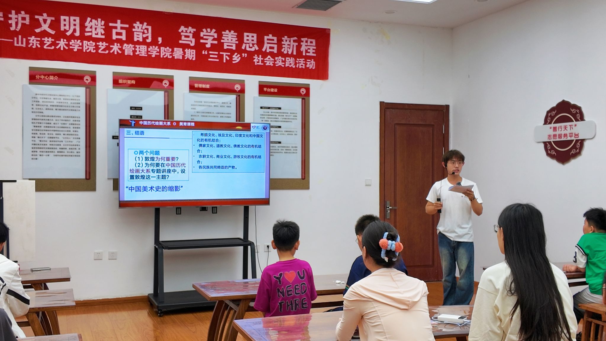 近日,艺术管理学院“艺心”志愿服务队赴枣庄滕州、济宁金乡开展“守护文明继古韵,笃学善思启新程”2024年大学生暑期“三下乡”社会实践系列活动。